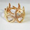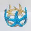 Fabricado en aleación dorada con baño brillante, combina estrellas de mar blancas texturizadas e incrustadas con cristales brillantes, creando un contraste entre lo natural y lo sofisticado.