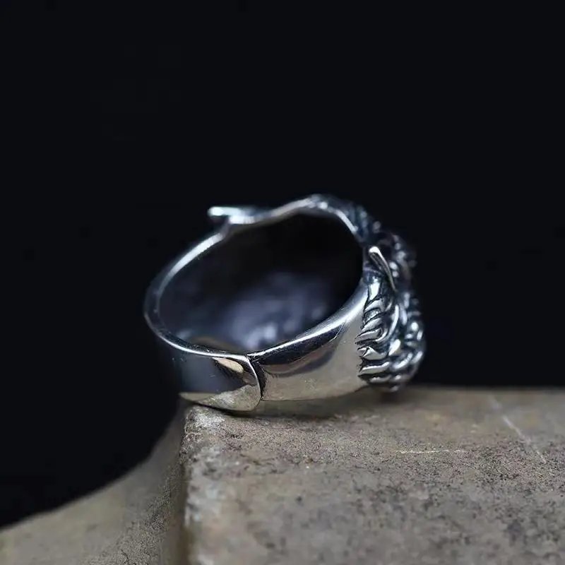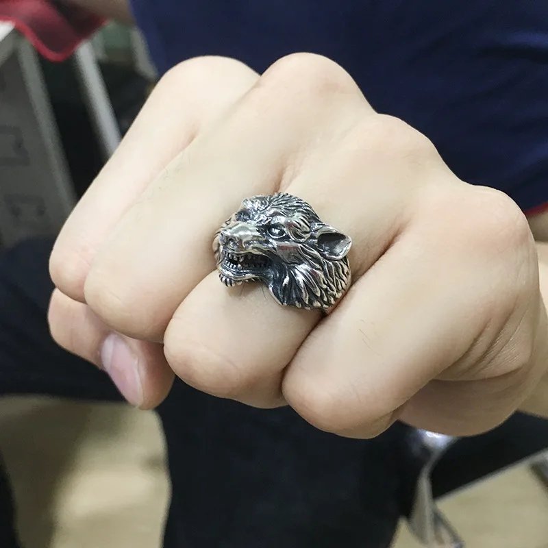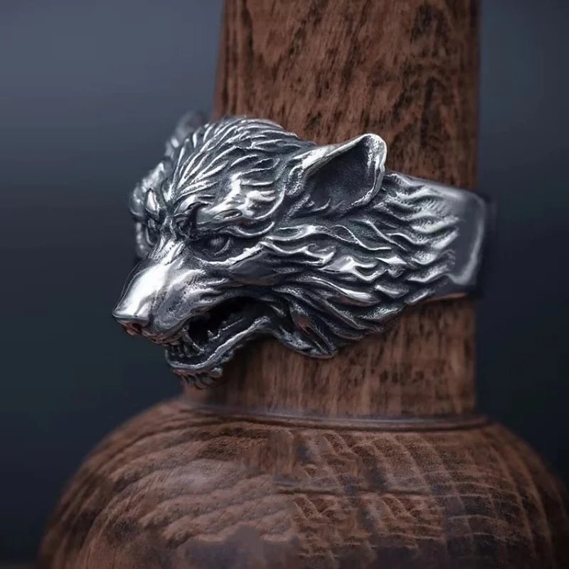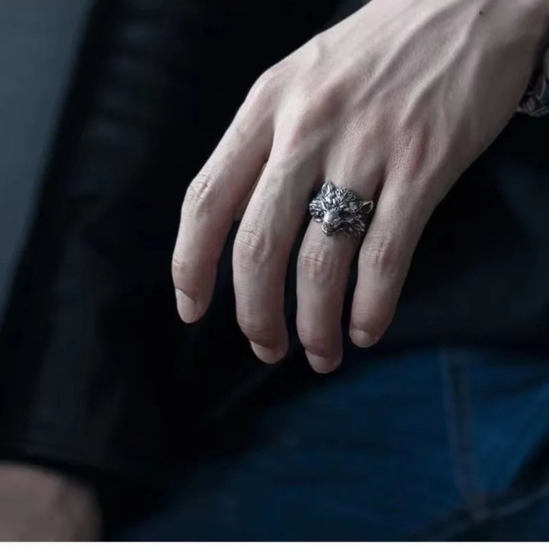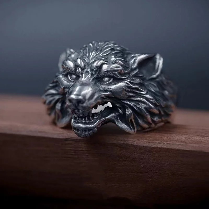 El lobo, símbolo de liderazgo, intuición y fuerza interior, ha sido venerado en mitologías y ecosistemas por igual. Este anillo lo representa con una cabeza de lobo esculpida en detalle: pelaje definido, colmillos a la vista y una expresión que impone respeto.