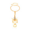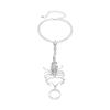 Fabricada en aleación dorada con acabado brillante, la figura del escorpión se adorna con incrustaciones tipo cristal que aportan un toque de luz y sofisticación a su silueta. La pieza cubre el dorso de la mano de forma articulada, uniendo la garra al brazalete mediante una cadena ligera y resistente.
